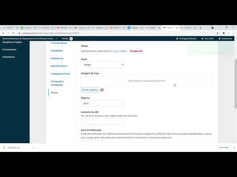 Em publicação há um menu com as abas (laterais) Título e Resumo, Contribuidores, Metadados, etc.,